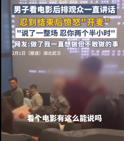 2025年1月31日,一名男子在观看电影时,遭遇后排观众持续不断的讲话骚扰。整个两个半小时的电影放映过程中,交谈声几乎没有停止过,严重影响了他的观影体验。尽管一开始他选择了忍耐,但在电影结束后,这名男子终于按捺不住心中的不满,大声表达了自己的抗议:“看什么电影,一直要说话,两个半小时,讲了一整场电影的话!”他的声音在安静下来的影院里格外清晰,既像是对自己忍耐的释放,也像是对不文明观影行为的一次有力抗议。